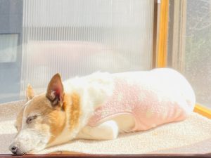 写真は昼寝中の我が家のわんこです。