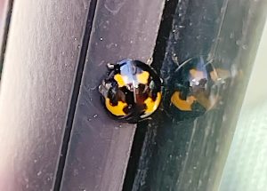 ふと見ると車の窓にてんとう虫の子どもがいる!