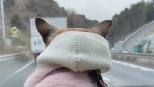 写真は車で移動中、